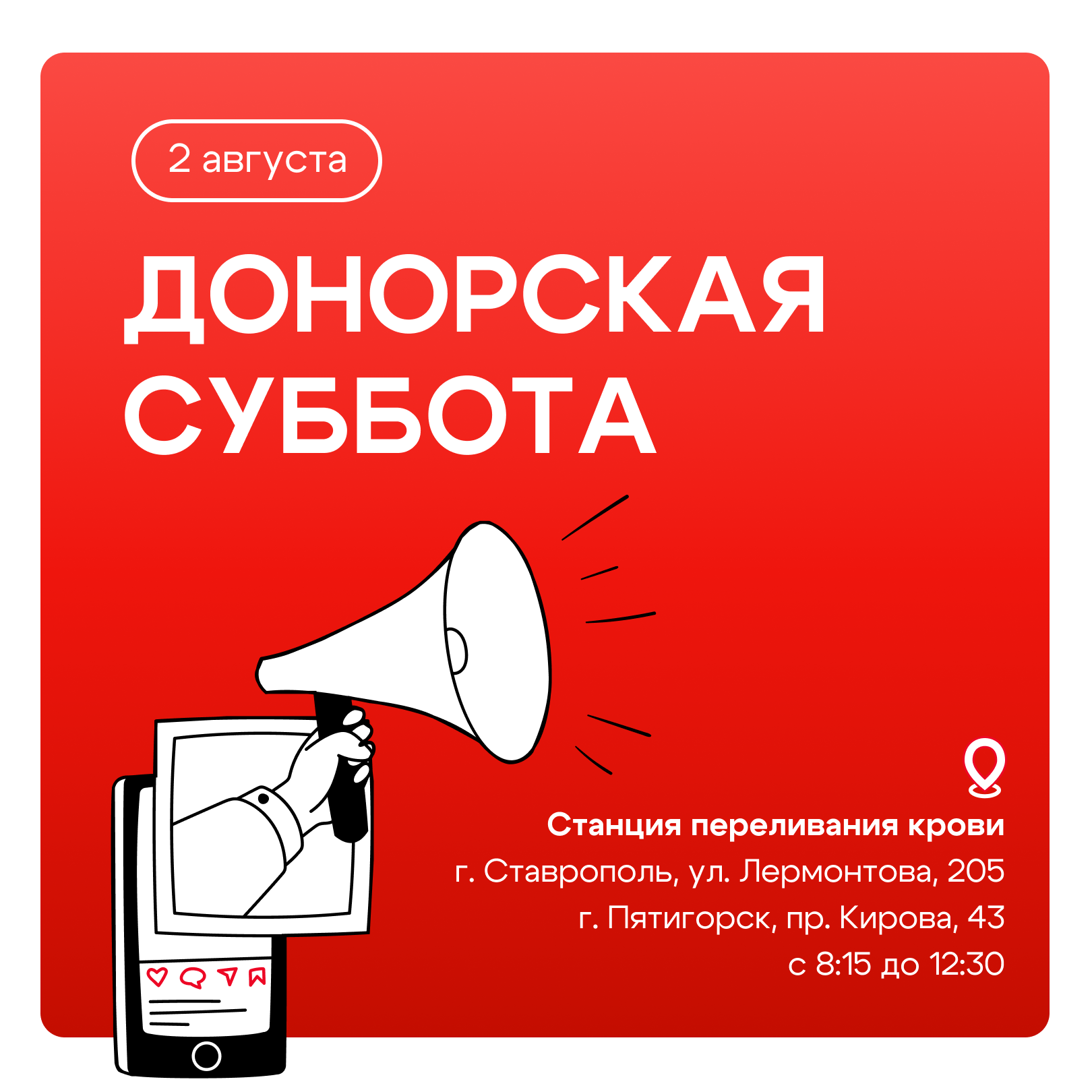 2 августа в Ставрополе и Пятигорске пройдут донорские субботы. Доноров крови ждут на станциях переливания крови с 8:15 до 12:30: