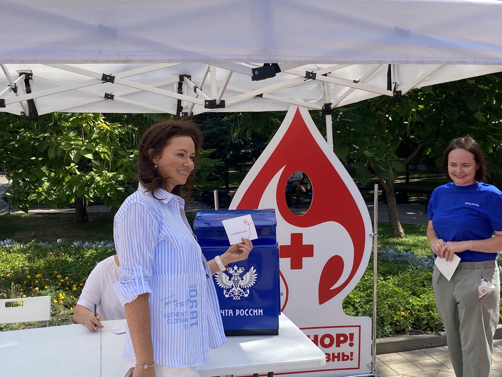 Все желающие также смогли в ходе мероприятия бесплатно отправить почтовую открытку «Донорство-на-Дону», которую лимитированным тиражом выпустила Почта России. Кроме открытки, Почта подготовила единственный в России штемпель, посвященный донорству.